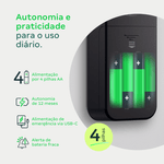 > Alimentação por 4 pilhas AA com duração média de 1 ano (10 acessos diários)
