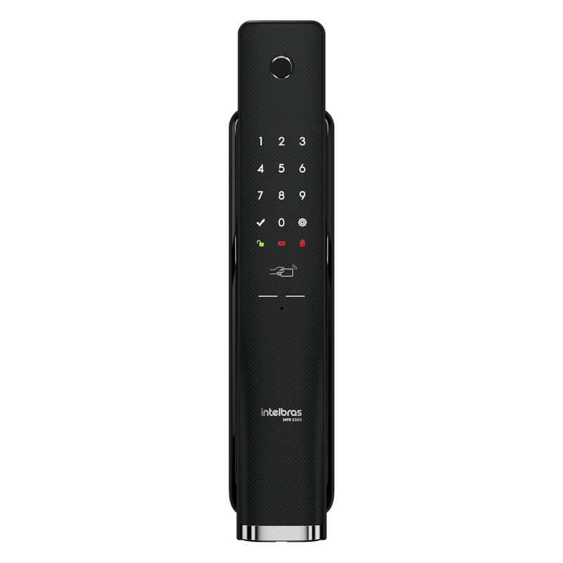 Com a MFR6300, fechadura inteligente de embutir, você pode acessar seu ambiente com até 100 biometrias, 100 tags, 15 senhas, 2 chaves mecânicas e pelo app Mibo Smart¹. ¹ O não uso de hub automação MCA implica em perda de funções do produto, como quantidade de acessos e funções do aplicativo. Verifique no manual do produto informações complementares. O hub é vendido separadamente.