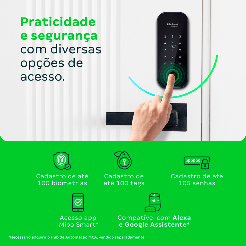 Características técnicas | > Cadastro de até 105 senhas, sendo 1 de administrador, 4 de visitante e 100 de usuário.