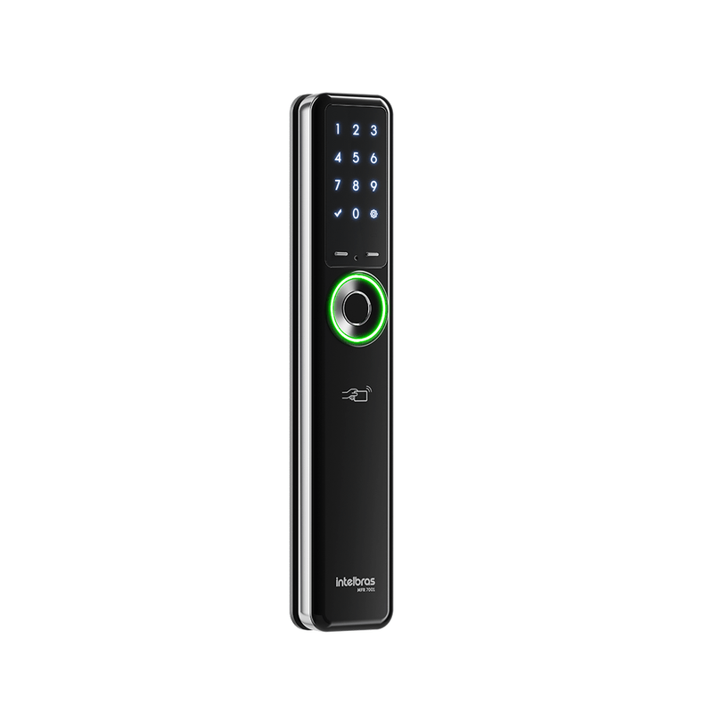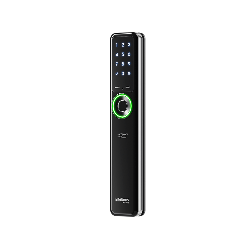 A MFR 7001+ permite a utilização de até 100 biometrias, 100 tags, 15 senhas, 2 chaves de contingência e acesso pelo aplicativo Mibo Smart¹. ¹ O não uso de hub modelos MCA implica em perda de funções do produto, como quantidade de acessos e funções do aplicativo. Verifique no manual do produto informações complementares.