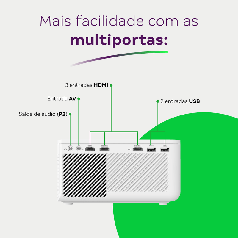 Desfrute de uma experiência imersiva com nosso projetor com tecnologia Bluetooth, que permite fácil conexão a caixas de som e fones de ouvido. Posicione o áudio onde preferir e aproveite sons potentes que complementam as imagens vibrantes, garantindo uma experiência audiovisual completa e envolvente.